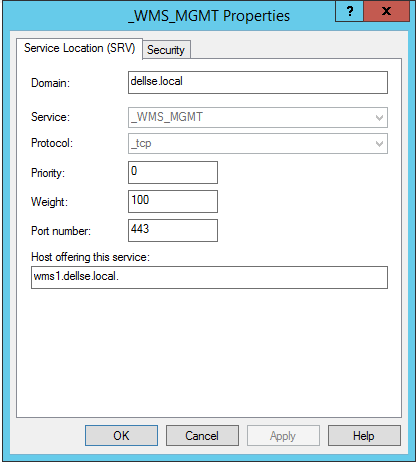 Setup your record for, “_WMS_MGMT”. This is the FQDN of your WMS server. Use the following options below: