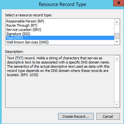 Select the “Text (TXT)” Record type: