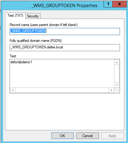 - Fully qualified domain name (FQDN): _WMS_GROUPTOKEN.your_domain