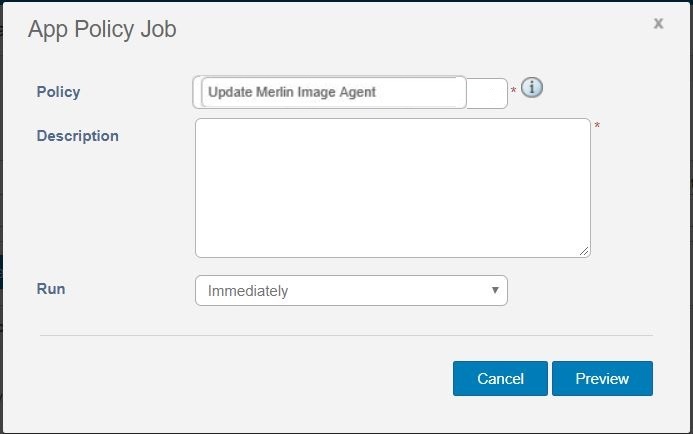 - Once policy is created, go to, “Jobs\Schedule App Policy” and create your policy similar to below:
