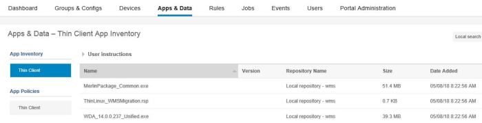 This package is already pre-loaded in the Wyse Management Suite software and listed under “Apps & Data\App Inventory\Thin Client” – MerlinPackage_Common.exe.