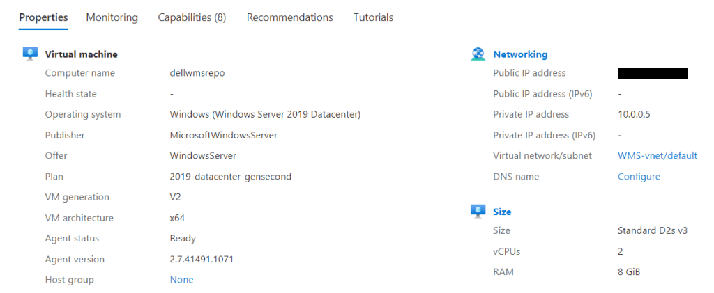 I wanted to outlined the WMS repository installation and Azure virtual machine configuration below.
