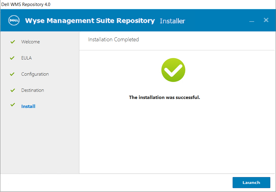 4. NOTE: Once the installation finishes and you click ‘Launch’ it make take 1-2 minutes for the installation to finish, close and then launch the browser, so be patient while it finishes. The WMS repository service is starting and the web page will be unavailable until it starts. You can confirm the services started by looking here: