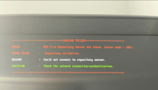 We also saw the following error right before imaging started, followed by the one above: